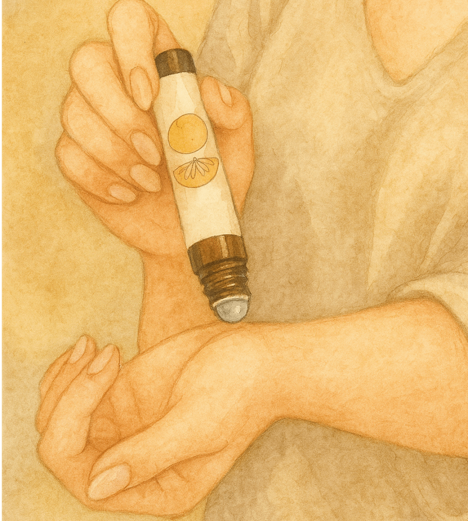 👉ロールオンボトルに、植物オイル(ホホバやココナッツ)10mlを加えて混ぜるだけ。