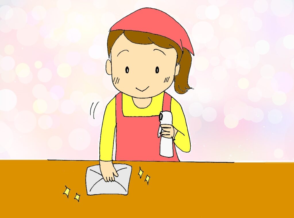 ✅ 木製家具・白木・大理石には直接スプレーしない(シミになることがあります)