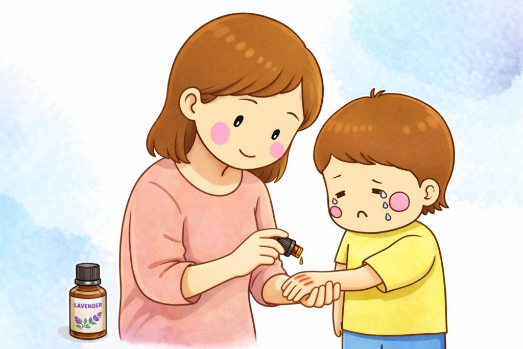 私も料理中に鍋でやけどしてしまったとき、すぐに水で冷やしながらラベンダーオイルをキャリアオイルで薄めて塗ったところ、翌日には赤みがずいぶん落ち着いていました😊「えっ、こんなに早く?」と驚いたのを今でも覚えています。それ以来ラベンダーは我が家の救急箱の定番になっています🌿