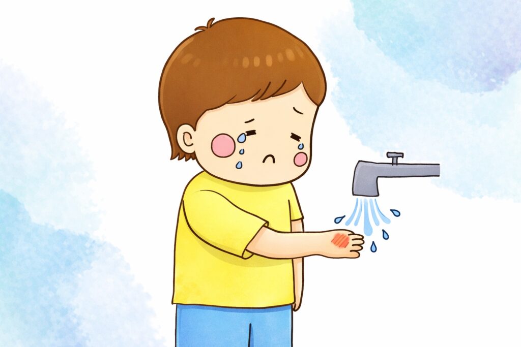 やけどの応急処置で最も重要なのはすぐ流水で冷やすことです💡