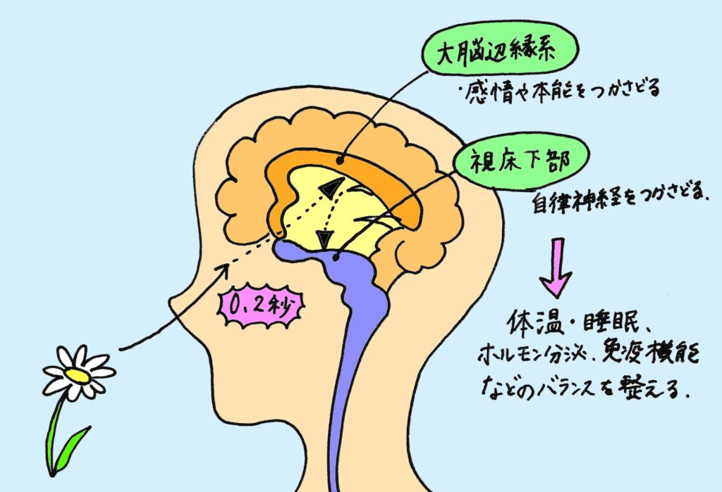 アロマの香りは、鼻から入ってほんの0.2秒で脳に届きます。