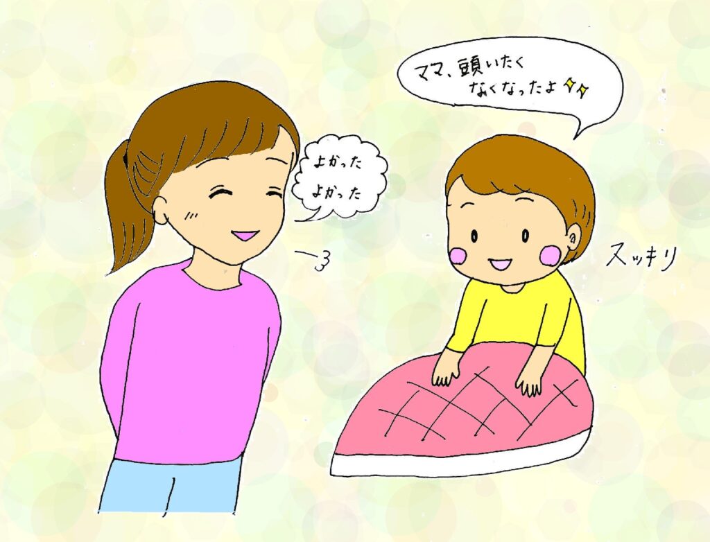 発熱しているとき、子どもも不安になります。