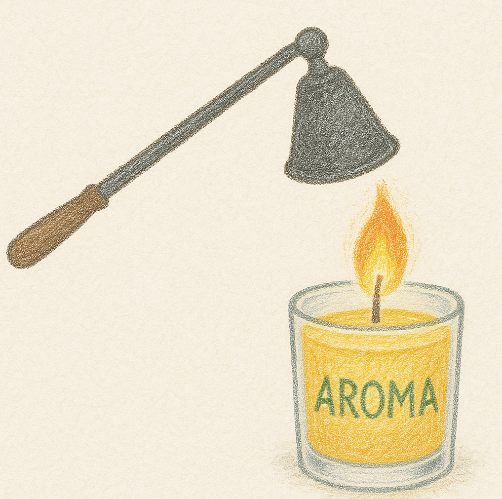 キャンドルの香りや美しさを長く楽しむには、専用の道具でやさしく消すのがコツなんです🌿