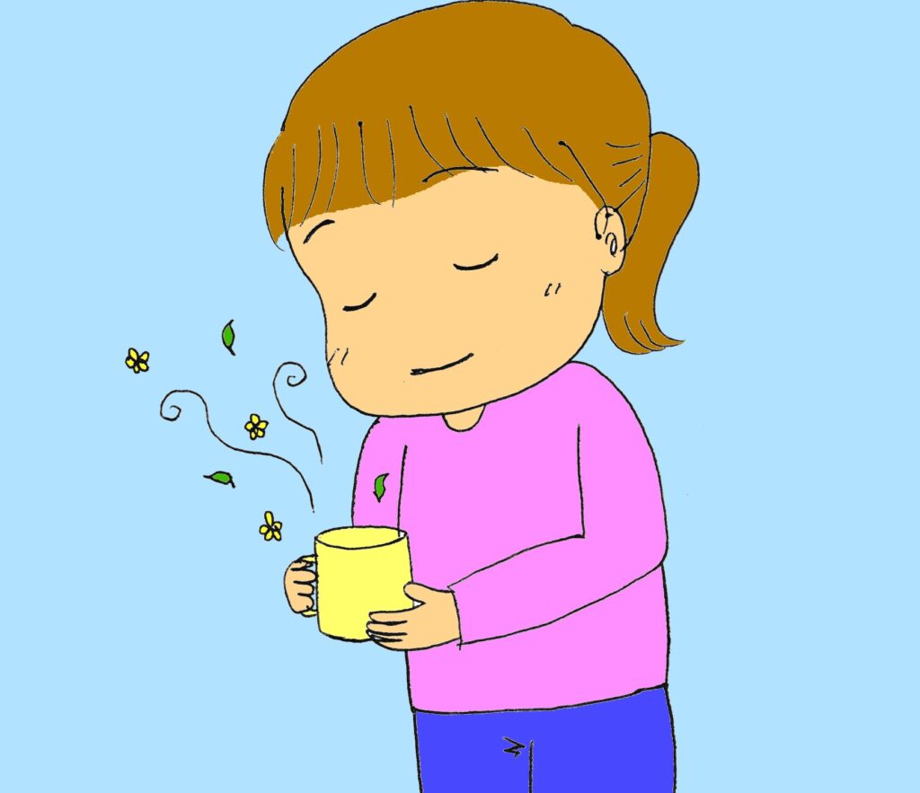 - ディフューザーを持っていない人はアロマストーンまたはティッシュ、お湯を入れたマグカップににアロマオイルを2〜3滴垂らして、自分の近くに置いて香りを楽しんでください。(例: グレープフルーツ2滴 + ペパーミント1滴)