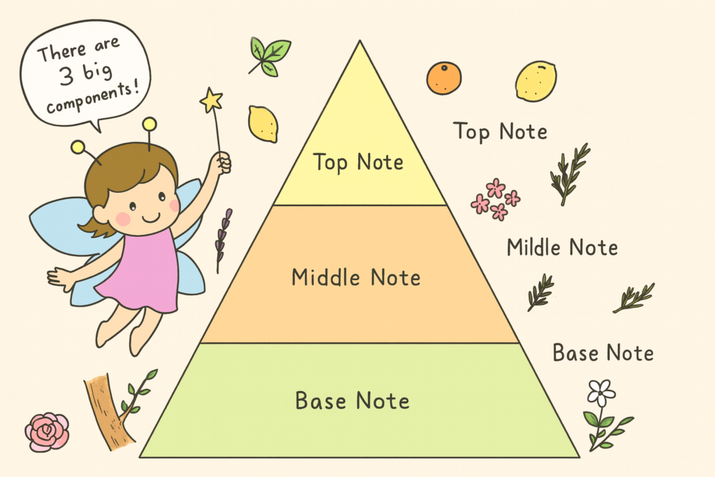 アロマには、「トップノート」「ミドルノート」「ベースノート」の香りの階層があります。