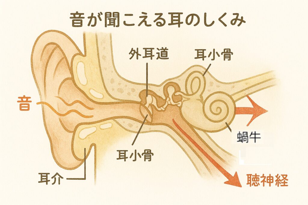 この振動は、耳を通じて脳へと伝わり、“聞こえる”という体験につながります。